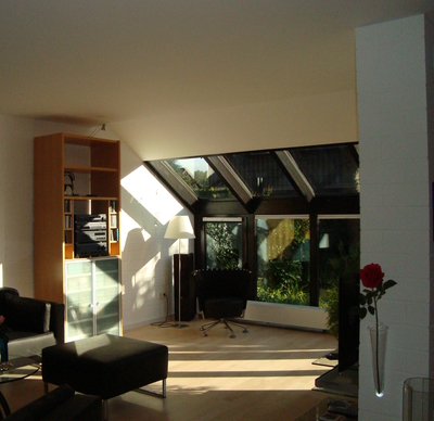 neu versiegelt. Im Wohnzimmer ist die Decke im Bereich des Wintergartens nun ruhiger. Die vorhandene Treppe